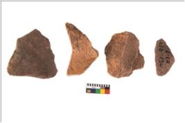 | Description / विवरण | Specimen of flake tools with prominent flaking marks. They are made up of a short flakes with sides trimmed. |