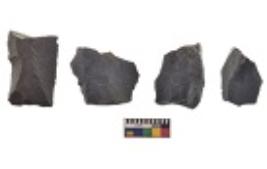 | Description / विवरण | There are n 4 utilized flake cores. There are multi directional irregular scar pattern on both dorsal and ventral face of the flake cores. One is tapering at one end and three have blunted edges. |