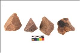 | Description / विवरण | There are n 4 utilized flake cores. There are multidirectional irregular scar pattern on both dorsal and ventral face of the flake cores. One has sharp edges and three have blunted edges. |