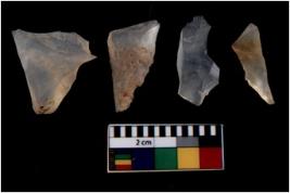 | Description / विवरण | There are n 4 flakes tool; there are large flakes with sides trimmed, Marks of secondary flaking are present on the both the faces. |