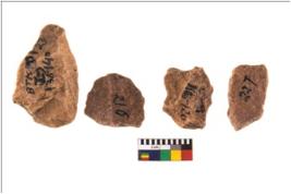 | Description / विवरण | Specimen of flake tools with prominent flaking marks. They are made up of a short flakes with sides trimmed. |