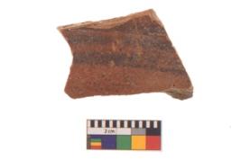 | Description / विवरण | Specimen of black on red ware with black decorative geometric painting. |