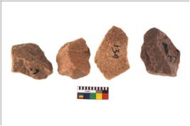 | Description / विवरण | Specimen of flake tools with prominent flaking marks. They are made up of a short flakes with sides trimmed. |