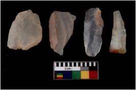 | Description / विवरण | There are n 4 flakes tool; there are large flakes with sides trimmed, Marks of secondary flaking are present on the both the faces. |