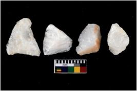 | Description / विवरण | There are n 4 utilized flake cores. One is tapering at one end and three have blunted edges. |