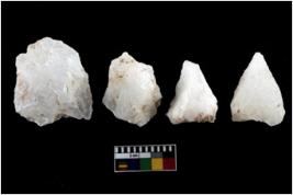 | Description / विवरण | There are n 4 flake cores. All of them are fully fluted flake cores without any trace of crested ridge flakes. Some have flat base while few have round edges. |