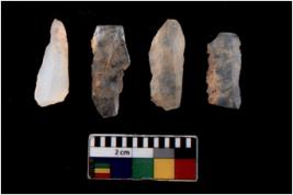 | Description / विवरण | There are n 4 flakes tool; there are flakes tool with prominent flaking marks. It made up of a short flakes with sides trimmed. |
