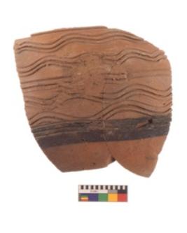 | Description / विवरण | Specimen of black on red ware with black decorative geometric painting. |