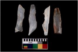 | Description / विवरण | There are n 4 Flake tool; There are multidirectional irregular scar pattern on them. few have blunt edges, Some of them are tapering at one end. |