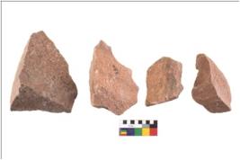 | Description / विवरण | There are n 4 utilized flake cores. There are multidirectional irregular scar pattern on both dorsal and ventral face of the flake cores. One has sharp edges and three have blunted edges. |