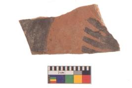 | Description / विवरण | Specimen of black on red ware with black decorative Small horizontal lines geometric painting. |