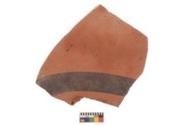 | Description / विवरण | Specimen of black on red ware with black decorative geometric painting. |