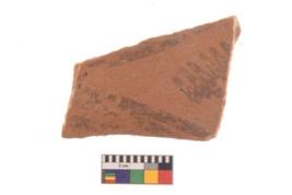 | Description / विवरण | Specimen of black on red ware with black decorative Triangle with zigzag line geometric painting. |