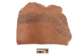 | Description / विवरण | Specimen of black on red ware with black decorative Semi circles joint on a line geometric painting. |