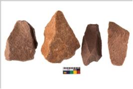 | Description / विवरण | There are n 4 utilized flake cores. There are multidirectional irregular scar pattern on both dorsal and ventral face of the flake cores. One has sharp edges and three have blunted edges. |