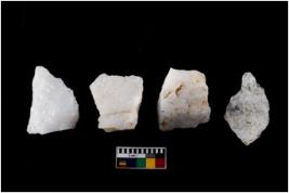 | Description / विवरण | There are n 4 of utilized worked cores. They have sharp edges and multidirectional scar pattern. Two are tapering at one end. |