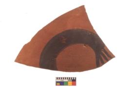 | Description / विवरण | Specimen of black on red ware with black decorative Circle with small vertical lines geometric painting. |