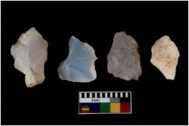 | Description / विवरण | There are n 4 flakes tool; there are flakes tool with prominent flaking marks. It made up of a large flakes with sides trimmed. |