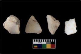 | Description / विवरण | There are n 4 flakes tool; there are large flakes with sides trimmed, Marks of secondary flaking are present on the both the faces |