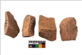 | Description / विवरण | There are n 4 utilized flake cores. There are multidirectional irregular scar pattern on both dorsal and ventral face of the flake cores. One has sharp edges and three have blunted edges. |