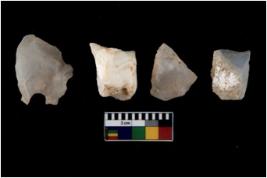 | Description / विवरण | There are n 4 flakes tool; there are flakes tool with prominent flaking marks. It made up of a short flakes with sides trimmed. |