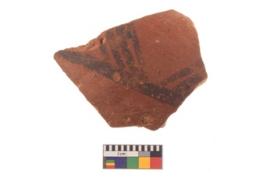 | Description / विवरण | Specimen of black on red ware with black decorative Zigzag lines geometric painting. |