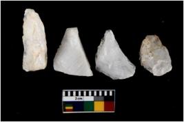 | Description / विवरण | There are n 4 utilized flake cores. One is tapering at one end and three have blunted edges. |