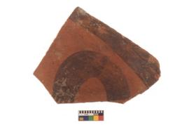 | Description / विवरण | Specimen of black on red ware with black decorative Semi circle geometric painting. |