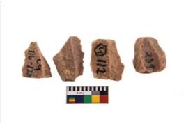 | Description / विवरण | Specimen of flake tools with prominent flaking marks. They are made up of a short flakes with sides trimmed. |