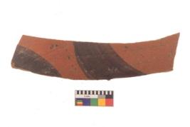| Description / विवरण | Specimen of black on red ware with black decorative Semi circles geometric painting. |