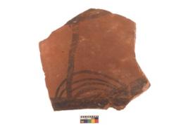 | Description / विवरण | Specimen of black on red ware with black decorative Semi circles geometric painting. |