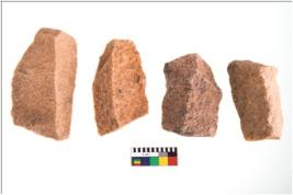 | Description / विवरण | There are n 4 utilized flake cores. There are multidirectional irregular scar pattern on both dorsal and ventral face of the flake cores. One has sharp edges and three have blunted edges. |