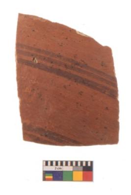 | Description / विवरण | Specimen of black on red ware with black decorative Parallel lines geometric painting. |