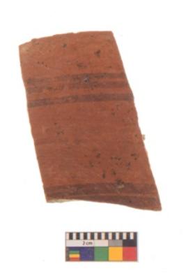 | Description / विवरण | Specimen of black on red ware with black decorative geometric painting. |
