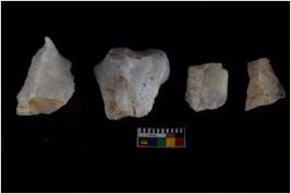 | Description / विवरण | There are n 4 of utilized worked cores and have irregular scar pattern on both dorsal and ventral sides. Three have a broken tip. |