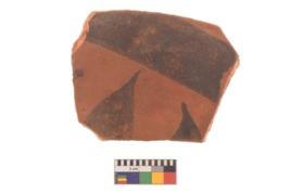 | Description / विवरण | Specimen of black on red ware with black decorative Petal motif geometric painting. |