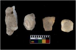 | Description / विवरण | There are n 4 flakes tool; there are flakes tool with prominent flaking marks. It made up of a large flakes with sides trimmed. |