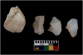 | Description / विवरण | There are n 4 flakes tool; there are flakes tool with prominent flaking marks. It made up of a large flakes with sides trimmed. |