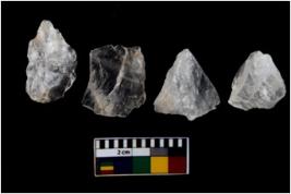 | Description / विवरण | There are n 4 utilized flake cores. One is tapering at one end and three have blunted edges. |