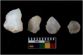 | Description / विवरण | There are n 4 flakes tool; there are flakes tool with prominent flaking marks. It made up of a short flakes with sides trimmed. |