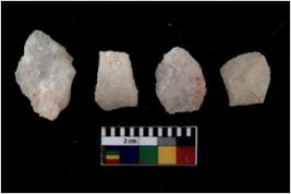 | Description / विवरण | There are n 4 flakes tool; there are flakes tool with prominent flaking marks. It made up of a large flakes with sides trimmed. |