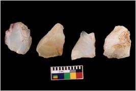 | Description / विवरण | Four utilised worked cores with sharp edges. Flakes have been removed from few sides. |