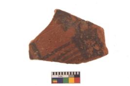 | Description / विवरण | Specimen of black on red ware with black decorative Parallel lines geometric painting. |