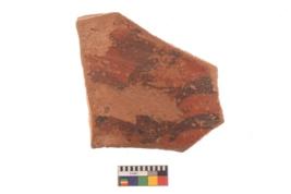 | Description / विवरण | Specimen of black on red ware with black decorative Wavy lines geometric painting. |