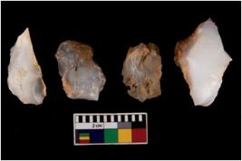 | Description / विवरण | Four utilised worked cores with sharp edges. Flakes have been removed from few sides. |