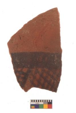 | Description / विवरण | Specimen of black on red ware with black decorative Lattice geometric painting. |