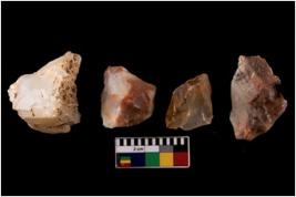| Description / विवरण | Four utilised worked cores with sharp edges. Flakes have been removed from few sides. |
