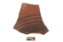 | Description / विवरण | Specimen of black on red ware with black decorative Concentric circles geometric painting. |