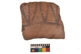 | Description / विवरण | Specimen of black on red ware with black decorative Elongated vertical triangles and dots geometric painting. |