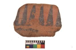 | Description / विवरण | Specimen of black on red ware with black decorative Group of elongated vertical triangles geometric painting. |